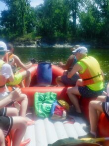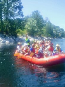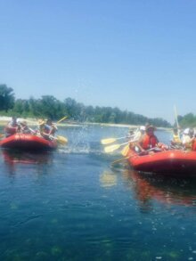 Anche noi abbiamo fatto un po’ di chiasso, inseguendoci tra equipaggi spruzzando acqua con le pagaie tra un gommone e l’altro, trovata geniale delle nostre guide per farci procedere spediti senza dar retta alla stanchezza!