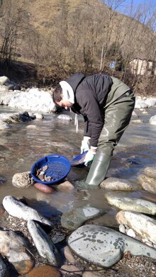 La giornata è stata magnifica e siete stati tantissimi!Nonostante il gelo pungente più di 40 appassionati vecchi e nuovi cercatori d'oro si sono incontrati per l'occasione. I nostri esperti hanno cercato di spiegare ai neofiti le principali tecniche di ricerca aurifera. L'oro in effetti si è fatto parecchio desiderare e solo i più esperti e con tecniche di ricerca da fessura hanno trovato l'agognato giallo. Il pomeriggio di sole ha scaldato l'atmosfera e la spettacolare grigliata è stata letteralmente divorata da tutta la combriccola. Alla fine sono stati sorteggiati anche bellissimi premi che hanno dato un ricordo concreto, oltre a una bella medaglia ricordo, della bella giornata in compagnia.